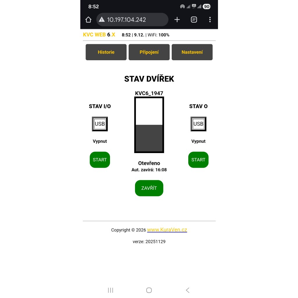 Dvířka se otevřou při východu slunce a zavřou při západu(automatický výpočet východu a západu slunce). Ovládání přes displej i webové rozhraní, notifikace do mobilu, možnost připojení krmiče, zámku, světla nebo ex. tlačítka. Řídicí jednotku můžete připojit k Wi-Fi 2,4GHz.